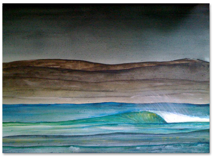 Righthand Reefbreak Horizon, 6ft set: 120 x 80cm, Acryl, Kreide, Kohle, auf Leinwand | SOLD!